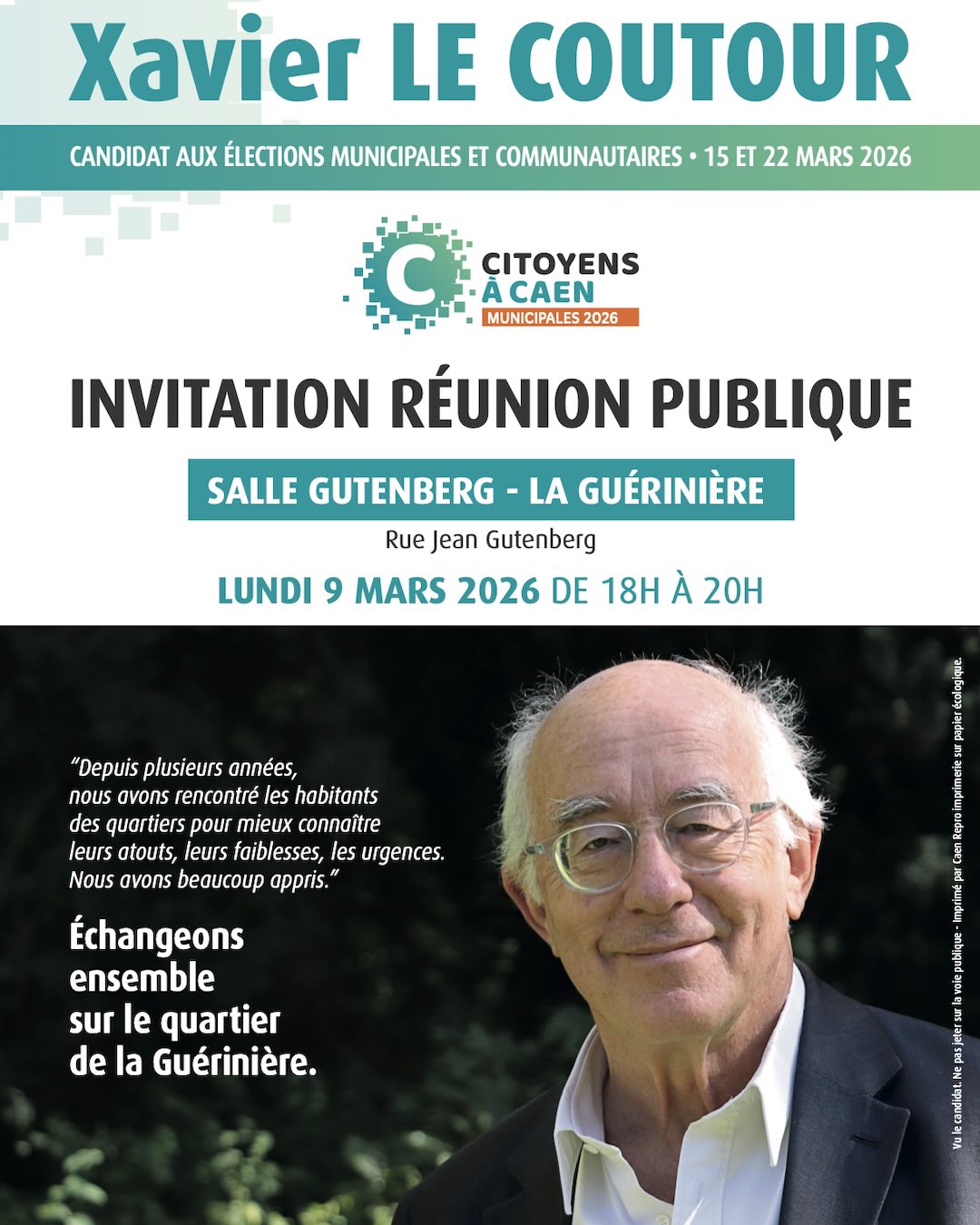 Xavier Le Coutour – Citoyens à Caen – la Gauche Indépendante – Candidat aux élections municipales et communautaires, 15 et 22 mars 2026